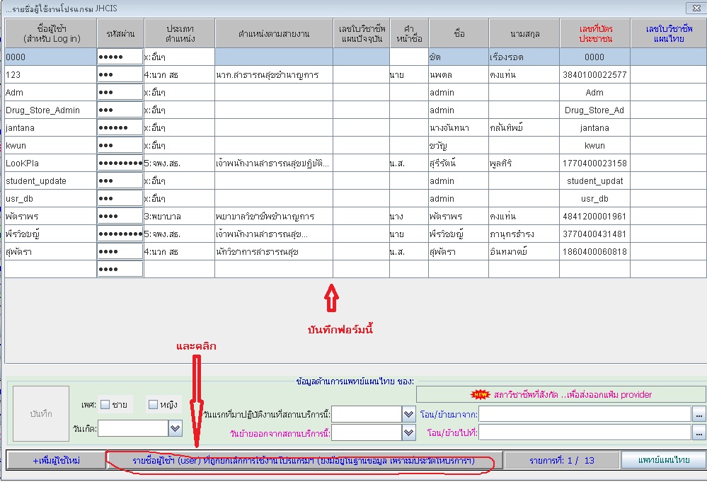 - วิธีบันทึกข้อมูล login ด้วย adm >